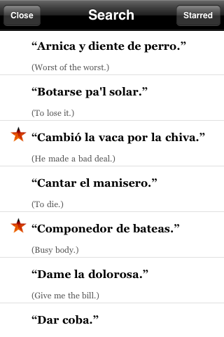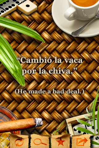 Wonder no more with Cuban Dichos! With hundreds of "dicharachos" and features such as Word of the Day, Search, Random, Share and Bookmark – figuring out what abuela meant is "un jamon".