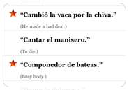 Cuban dicharachos (dichos for short) are colloquial expressions used to describe common day to day occurrences. These spicy dicharachos are colorful examples of how Cubans approach life with humor and inventiveness.